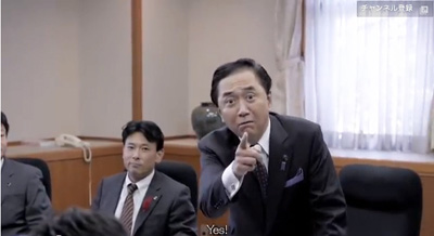 ノリノリの演技を見せる黒岩知事(YouTubeより)