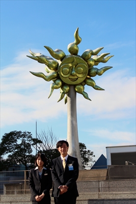 岡本太郎氏の生誕100周年の2011(平成23)年、日本中の氏の作品に注目が集まったこともあり、こちらの「太陽」のモニュメントに対する取材もコンスタントにあるのだそう。なお、通常の取材では室内でインタビューをさせていただくことが多いのだが、今回は「太陽」の前で名刺交換させていただき、そのまま「太陽」の下でお話を伺った。