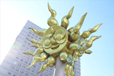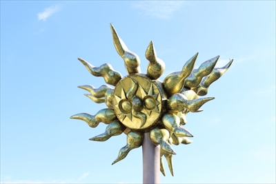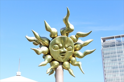後述するが、この「太陽」は設置より28年を経過しており、芸術品であるがゆえにメンテナンスはできていないが、太陽の光を受ける表面は神々しいまでに金色(コンジキ)だ。
