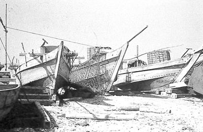 浜に並ぶ和船 1955(昭和30)年(横浜マリタイムミュージアム蔵)