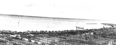 海苔乾し台が並ぶ本牧の浜 1955(昭和30)年(撮影:落合昭一氏)