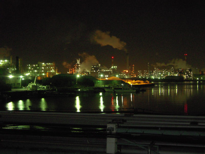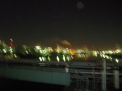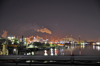 タンクやプラントが浮かび上がる川崎工業地帯へ