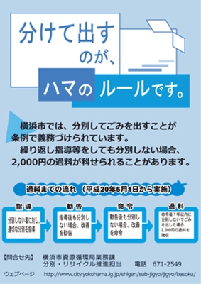 横浜市資源循環局職員が調査し、分別が不十分ならば条例に基づいた手順を踏み、個人に行政指導などを行う。個人情報は厳重に保護しており、流出はない