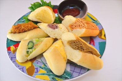 これらの調理パンの大きさは約12.5センチ。なぜ小ぶりのサイズなのか聞いてみたところ、「大きいと、端をのこす人がいるでしょ。子どもやお年寄りでも食べきれるサイズにしてあるの」と奥さんの談。