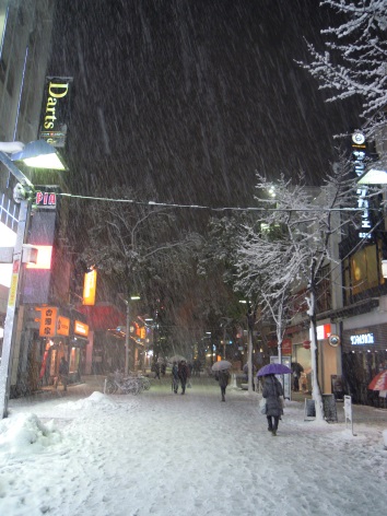 一面銀世界のイセザキモールから福富町方面へと歩く