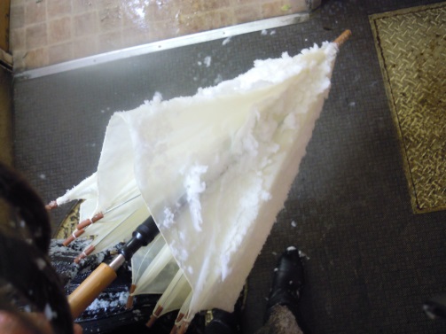 雪が積もって傘が重い