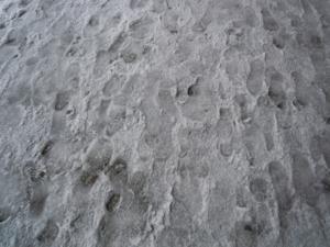 雪が積もっているので、何度か転びそうになる