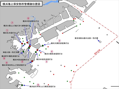 横浜港には10の灯台のほかに、海の安全を守る灯標(とうひょう)と灯浮標(とうふひょう)というものも存在する。そのすべては航路標識の中で光波標識と呼ばれるもの。光で船を導く役割をする。ここで、聞き慣れない灯標と灯浮標の役割について。