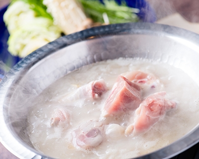 「水炊き鍋」の鶏も骨付き! ダシもコラーゲンもたっぷり (写真提供:ハマの鶏次)