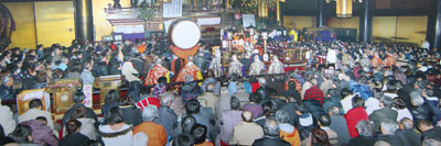 正月の三が日は、本堂の中は、このように人で埋め尽くされる(提供:成田山新勝寺)