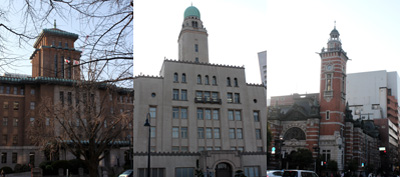 横浜三塔の様子(左から、キング・クイーン・ジャック)