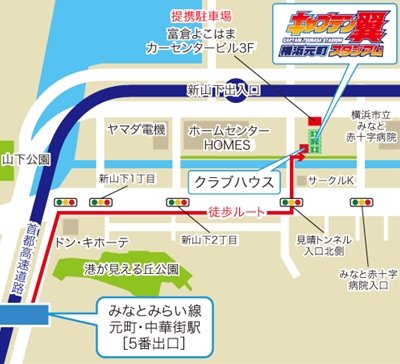 場所はこちら。(キャプテン翼スタジアム横浜元町HPより)