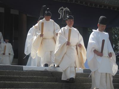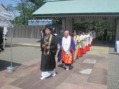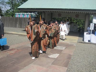 雅楽を演奏しながら入場する