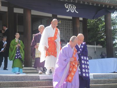 追悼式は午後2時からだが、その前に行われたのが神奈川県戦没者追悼奉賛行事だった。これは神奈川県戦没者慰霊堂奉賛会が主催して行われるもので、追悼式が無宗教の儀式であるのに対し、奉賛行事は仏教や神道、キリスト教などさまざまな宗教が独自の祭式で戦没者を追悼するものである。