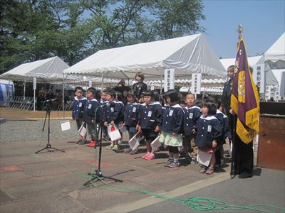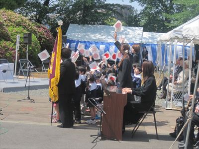 日の丸を振る幼稚園児