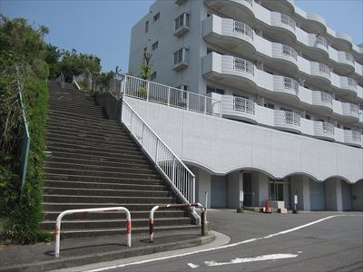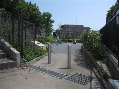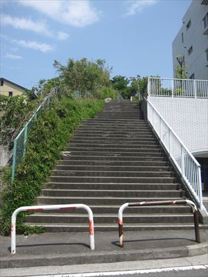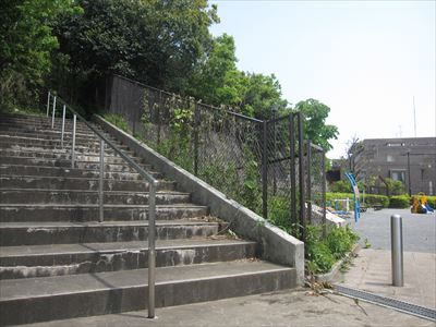 本当にこの先に公園があるのか? マンションへの不法侵入になりはしないかと恐れつつ、番地を信じて階段に足をかける。23段、9段、12段、15段、17段と5つに小分けされた計76段もある急な階段を上っていくと・・・。