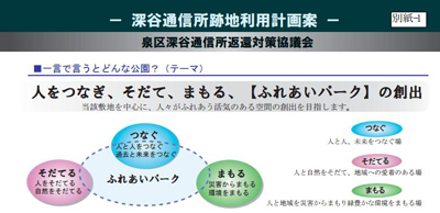 深谷通信所が位置する泉区では、区内で設立された「泉区深谷通信所返還対策協議会」から計画案が提出された。