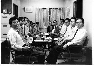 設立時のメンバー。右奥が春日二郎氏、その手前が兄の仲一氏(写真提供:アキュフェーズ)