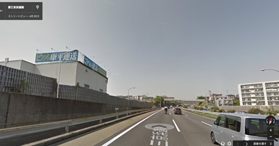 第三京浜から見える「ピアノの康平運送」の看板(Googleストリート・ビューより)