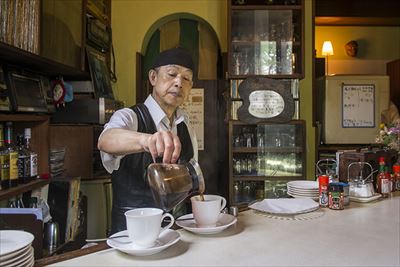 懐かしい雰囲気の中で、バド・パウエル(モダン・ジャズピアノの祖と称されるジャズピアニスト)の小気味良い演奏を楽しみながらコーヒーを飲んでいると、マスターがテーブルにきてくれた。
