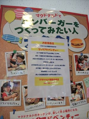 マックアドベンチャーとは、ハンバーガー作りが楽しめたり、お店探検などができるそう(対象年齢は3歳から12歳まで)。子どもが楽しめるイベントだ。港南中央店では、平日は毎日開催しており、予約制となっている。マクドナルドのホームページから、マックアドベンチャーを実施している店舗を検索することができるそう。