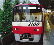 「京急ウィング号」の2100形は8両編成。全部で10編成。そのうち、9編成は赤と白の塗装を施したもの。残りの1つは青色塗装の「京急ブルースカイトレイン」とのこと。