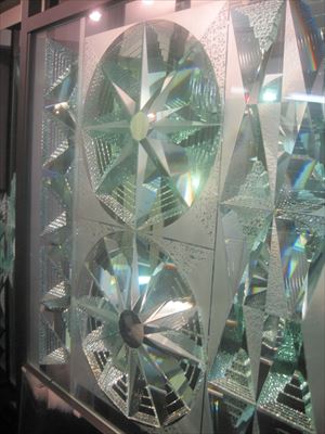 大きなガラスを子細に眺めると、そこに実にさまざまなデザインが描かれていることに気づく。花、砂時計、カモメ……繊細な図柄が透き通ったガラスの世界に浮かび上がっている。