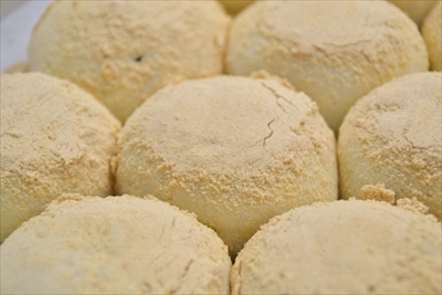 木村さんによれば、その秘密は、北海道産の厳選された小麦にあるそうだ。一般の小麦粉だとコシが強すぎて、「フワモチ」にはならないらしい。そのもっちりとしたまんじゅうが、手や包装紙にくっついてしまうことから、きな粉をかけるという工夫を思いついたのだとか。