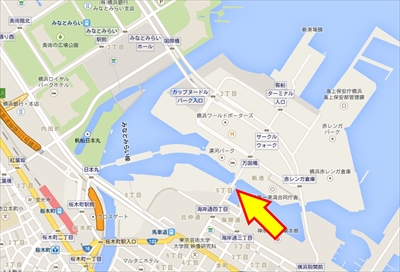 実は先ほどの写真、みなとみらい線「馬車道駅」にほど近い「万国橋」から撮影している。「横浜ランドマークタワー」と「コスモクロック21」を両端に配したアングルは収まりが良く、入江になった海面は波立つことが少ない。