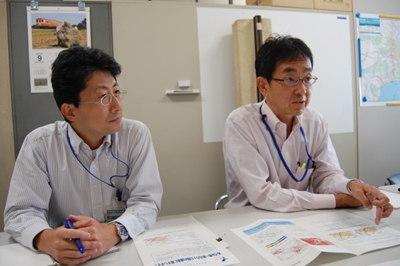 市庁舎で取材に応じてもらった國本課長(右)と村田係長