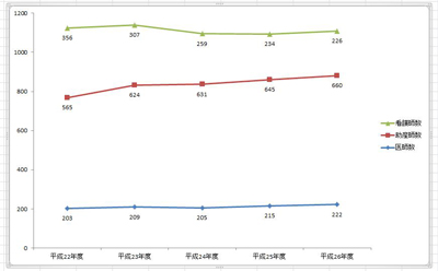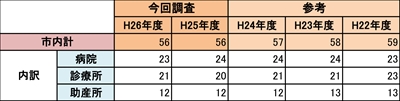 次は横浜市内の分娩を取り扱う施設数。こちらも少しずつではあるが、減少傾向にある。産む人の数が減っているから、施設もこのくらい減るのだろうか。