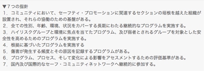 セーフコミュニティ認証のための、7つの指標(JISCホームページより)