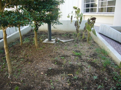 最もよく利用される正面玄関からダイレクトに見える場所で、いわば学校の「顔」と言っても過言ではない中庭がこの状態では・・・という懸念があったため、学校側はこの提案を前向きに検討することにした。