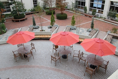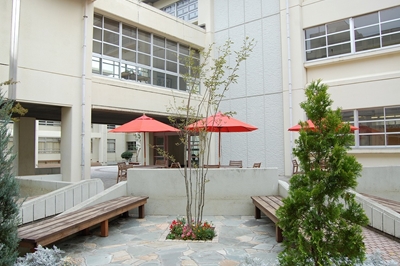 佐久間校長「当校は2013(平成25)年に創立30周年を迎えました。その記念に何か新しいことができないかと模索しているときに、PTA環境委員を勤める保護者の方から、中庭スペースにカフェを作ってみてはどうかという提案があったのです」