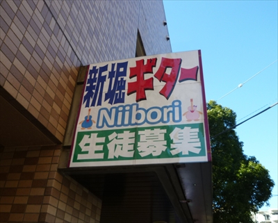 誰もが一度は目にしたことがあると言っても過言ではない(?)「新堀(にいぼり)ギター」という看板。