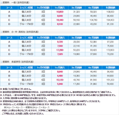音楽教室の料金体系は、コースによって変動し自分にあった練習方法や回数を選べるので、ライフスタイルに合わせ無理なく通うことができる。レッスン料金以外には、入学金(学生・未就学児6480円、一般1万800円)などがかかるとのこと。