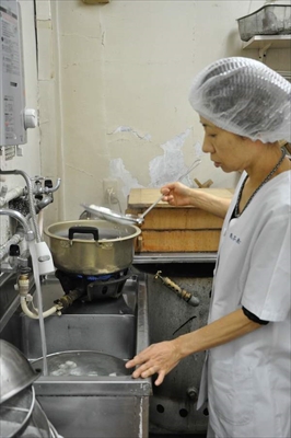 朝早くから厨房で店頭に並ぶ商品の仕込みをする美恵子さん