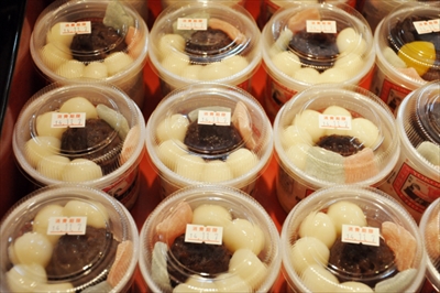 実は、白玉を作っているのは、戸塚にある工場。伊勢佐木町の厨房では、工場から冷凍の状態で運ばれた白玉を販売数分だけゆでるだけ。店舗では、同じく工場で作られた寒天や餡、求肥(ぎゅうひ)とともにパックに詰めているのだそう。投稿にある「午前中に売り切れてしまう白玉あんみつ」は、この日、24個が店に並ぶという。