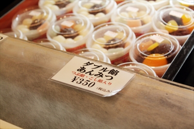 それもそのはず。手作りの寒天に求肥、餡がカップに入って、こし餡とつぶ餡が330円。白玉とダブル餡は350円というから、売れるのは当たり前のことだろう。ほかのお店であんみつを買おうとすると500円くらいはするんだけど・・・ちょっと安すぎませんか!?