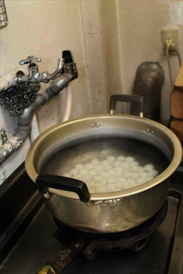 「ああ、聞いています。どうぞ」と迎えてくれたのは、長く銚子屋で働く美恵子さん。毎日、午前7時には出勤して、白玉あんみつに入れる「白玉」をゆでたり、蒸し羊羹を蒸したりされているそうだ。