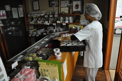 「ああ、昨日天気が悪くて残っちゃったんです。通常は250円で販売しているんですけど、消費期限が短くなるので、お安くして店頭に並べました。雨が降ったからといって、必ず商品が残るわけではないので、いつも100円の蒸し羊羹があるとは限りませんけど(笑)」