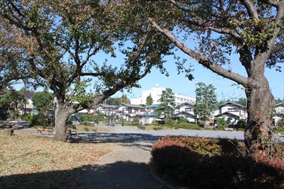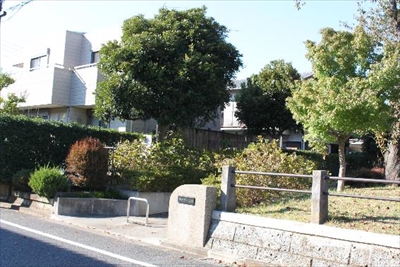 石碑がある瀬谷区の東野(あずまの)第一公園は、横浜市立東野中学校の西側、閑静な住宅地の中にある。