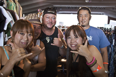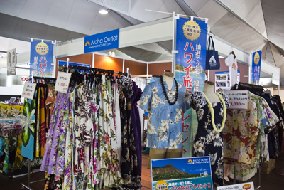 アロハシャツやパウスカート、レイやシェルネックレス、バッグや小物といったハワイアンファッションのショップがずらりと並んだ会場はカラフルで華やかだ。
