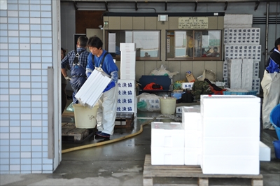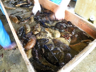 獲ったナマコは出荷場で梱包されそのまま加工業者へ