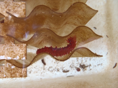 強化プラスチック水槽の壁に稚ナマコが這う様子(提供:神奈川県水産技術センター)