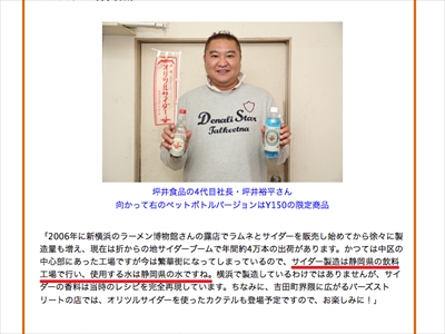 「横浜の地サイダーなのに、横浜の水で作っていないのはとても残念だ」