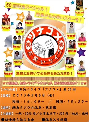 イベントの正式名称は上に書いた“ツナシマンズ・ゴッド・コメディアンズライブ”。綱島でひそかに話題のイベントとのこと。