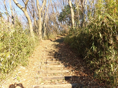 階段を上りきると、そこは林道のようになっていた。スポーティーな格好で散歩している人とすれ違う。