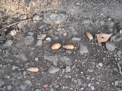 階段には豊富にどんぐりが。どんぐりの何が子どもを駆り立てるのだろうか