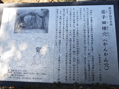 ここにある穴は、古墳時代後期から奈良時代にかけての有力者の家族墓だと書いてある。当時の有力者の居宅を表現した墓で、市内では珍しい形態の横穴であるとのこと。7世紀前半のものらしい。1928(昭和3)年にはこの墓が学会で紹介され、1956(昭和31)年に発掘調査されてこの横穴のことが明らかになったとある。